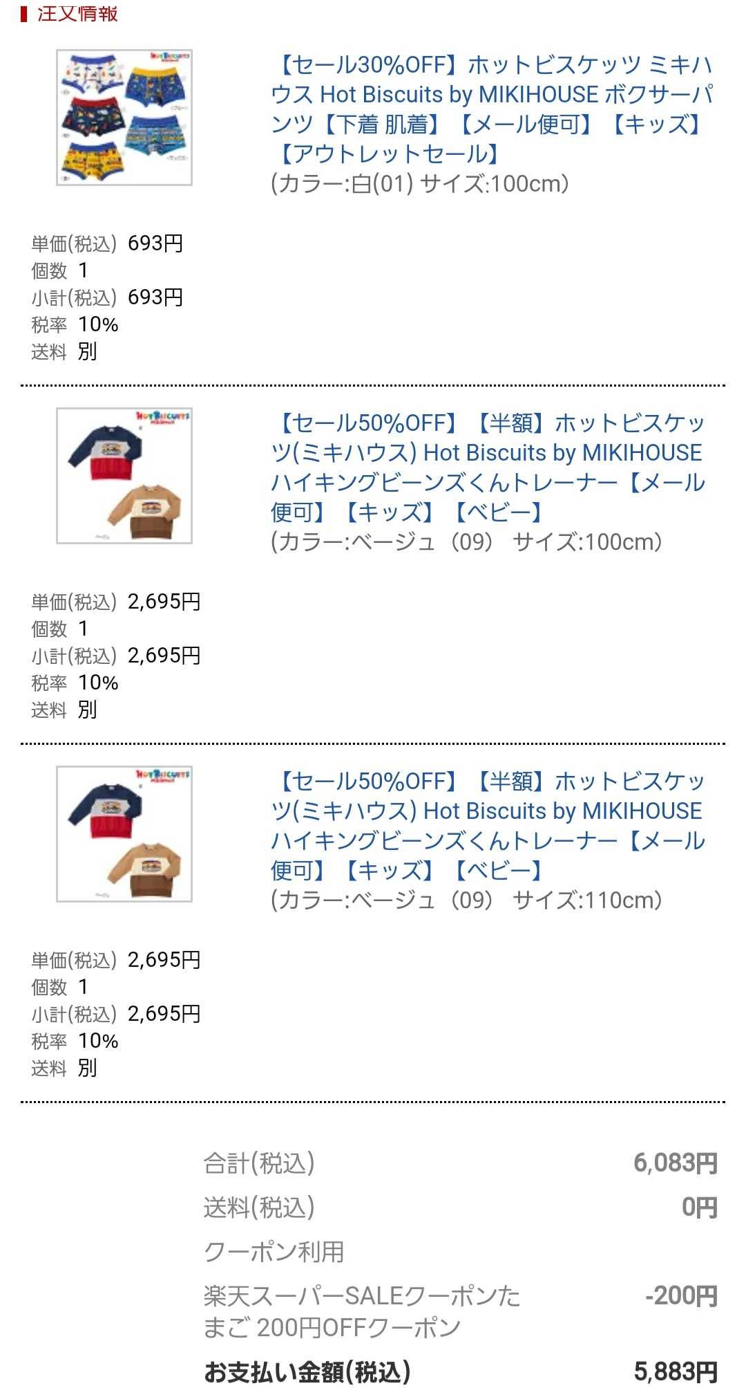 スパセ最初のポチは、リプロで見てて気になってたホットビスケッツのトレーナーをポチりました😊❤️❤️半額って言葉好きです😍今日は4日だし、明日でもいいかな?と思っていたら続々と在庫わずかになっていたので慌ててポチりました😊💦そして、5,500円以上でメール便無料かつ、6,000円以上でたまごクーポンが使えるのでパンツも買ったら奇跡の6,083円😊❤️買いなさいって言われた気がしました…😆(笑)【セール50%OFF】【半額】ホットビスケッツ(ミキハウス) Hot Biscuits by MIKIHOUSE ハイキングビーンズくんトレーナー【メール便可】【キッズ】【ベビー】【セール50%OFF】【半額】ホットビスケッツ(ミキハウス) Hot Biscuits by MIKIHOUSE ボアフリーストレーナー【キッズ】【セール50%OFF】【半額】ホットビスケッツ(ミキハウス) Hot Biscuits by MIKIHOUSE サイドお顔アップリケパンツ【ベビー】【キッズ】【メール便可】【セール50%OFF】【半額】ホットビスケッツ(ミキハウス) Hot Biscuits by MIKIHOUSE お顔モチーフトレーナー【ベビー】【キッズ】【メール便可】【セール50%OFF】【半額】ホットビスケッツ(ミキハウス) Hot Biscuits by MIKIHOUSE だまし絵トレーナー【メ-ル便可】【キッズ】【ベビー】【セール50%OFF】【半額】ホットビスケッツ(ミキハウス) Hot Biscuits by MIKIHOUSE 裏起毛トレーナー【メ-ル便可】【キッズ】【ベビー】【セール50%OFF】【半額】ホットビスケッツ(ミキハウス) Hot Biscuits by MIKIHOUSE 裏ボアジャンパー【キッズ】【ベビー】