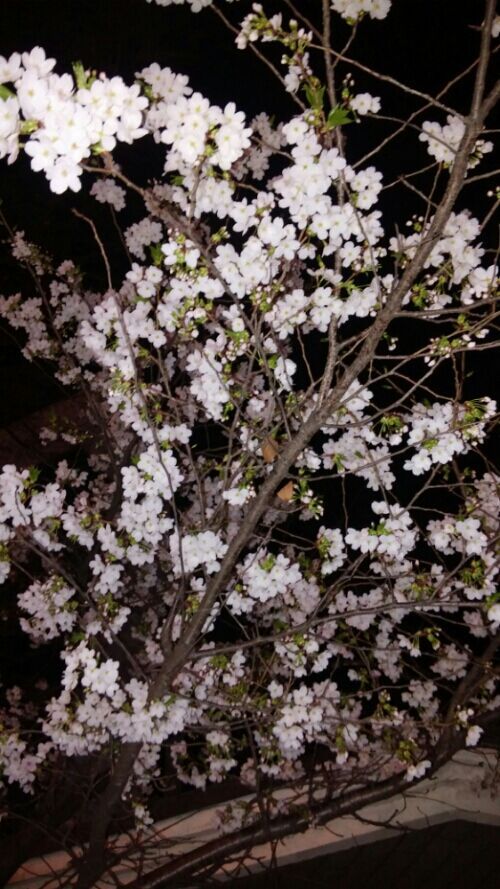 夜桜撮ってみたらあら? もう葉っぱ出てきてます。 お花見しないとー!!