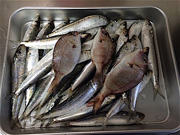 サビキ第2段٩( ᐛ )و釣り楽しい( ^ω^ )初心者ですが、イワシの大きいサイズと鯛の小さいのが日中に沢山釣れました♥仕掛けも簡単で釣れたらハマる!!はじめは、サビキで楽しんで徐々にレベルアップしていきたいと思ってます(^-^)/サビキは、ファミリーフィッシングにも向いていて大人の方が針さえ気をつけてあげれば初心者の方やお子様でも簡単にお魚ゲット出来ちゃうので〜是非、週末に釣りにお出かけしてみては?釣れたイワシは、つみれにしてつみれ汁やお鍋に入れて美味しくいただきました(*^^)v