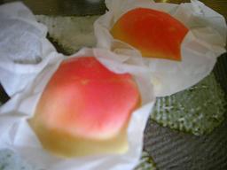 とうとう帰っちゃいました。息子が!♪居れば振り回され、仕事もあまり遅く成らないようにと結構気を使い・・・。でもわがままですね!居なくなると何かがふっと「無」になったそんな感じがしちゃいます。(笑)今日は夕方に帰るというため、両祖母のところに行き最後のお顔見せ!φ(≧。≦)その後は、帰る時間まで一緒にショッピングしていました。!前回帰ってきたとき以降洋服は1着も買っていなかったといい、ジーパン2着、上着1着買いました。もちろん支払いは母の私(--;)高校の頃は、一緒に歩くなんて嫌がったり、話も「うん」とか「そう?」とか位しか話さなかったけど、大人になりましたね!優しい笑顔でいつも話しかけてくれ、「大丈夫?」とか「へぇ~そうなんだ!」と次の話を待っている。そして、帰りには「じゃありがとう!体気をつけてね!食べ過ぎないんだよ!!」って。。。。嬉しいような・・・でも反面、大人にだんだん成長し、自分から離れていく子供を感じ寂しかったですね!贅沢か?φ(≧。≦)子供はわがまま言って、反抗して、周りにじゃれ付いてくれている内がいいなぁ~~なんてね!^^そんな息子は本当は明日成人式!!「おめでとう!!」でも明日はコンサートがあるからと、式には出席しません。昨日、一昨日とその分友達と朝まで遊んでいたようです!!スーツだけは・・なんて思っていたら、母(祖母)が「スーツを作るように」とお祝いをくれました。嬉しかったのは本人ですが、私もとても嬉しかったです(笑)おばあちゃんありがとうね!^^φ(≧。≦)下の写真は「桃」じゃないですよ!!「信玄桃」というお菓子。娘が帰ってきたときにお土産に持ってきてくれたもの!!で?息子のおみやげは??横浜には「おみやげ」は何もないらしい。。。??「横浜には何も土産は無いなぁ~~」と言いながら、義弟(息子の叔父)が土産に買ってきてくれた、「崎陽軒のシュウマイ」を食べてたなぁ~~(笑)そんなこんなでお正月はお終いです!!また、パソは私のもの!!またまたお伺いしますね!^^よろしくね!^^Natsu&Kei