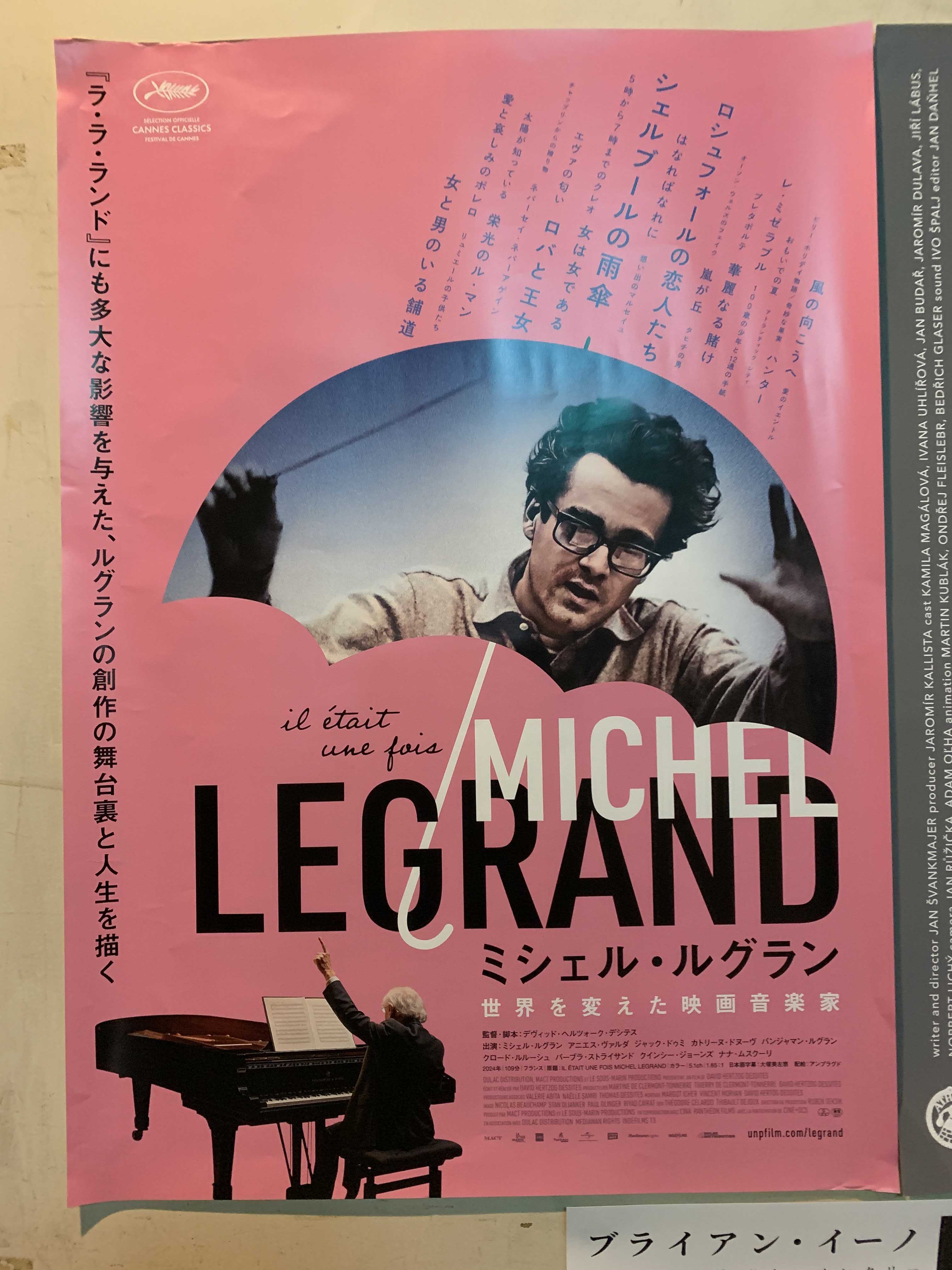 (映画館のスタッフさん、もっとていねいに貼ってあげればいいのに、とおもうw)ミシェル・ルグラン、映画音楽家としてあまりに有名。作品は観たことがなくても、テーマ曲は知っているという人も多いだろう。ワタシもその一人w「シェルブールの雨傘」(ミシェル・ルグランの代名詞ならぬ代名曲?)「ロシュフォールの恋人たち」(昔、車のCMでよく流れていた)などは特にそう。が、そのスタートは、デイジー・ガレスピー楽団の一員で、ジャズピアニストからだったという。意外だった。ゴチゴチのオーケストラスコアを書く作曲家が、即興命!のバップ・ジャズから入っていたとは、にわかに信じがたかった。そういえば、彼の指揮していたビッグバンドは、どことなく、クインシー・ジョーンズを思わせる曲調だった。気難しく神経質、仕事では一切の妥協も許さなかったので、一緒に仕事をした人たちは終始ピリピリだった。意見が対立して、ステージを降りた奏者もいた。なんだか、日本の演出家”蜷川幸雄”と重なるな。蜷川の場合は、稽古中に灰皿が飛んできたらしいが、ミシェルの場合は、指揮棒が飛んできたのだろうか(個人のイメージですw)2019年に亡くなる数か月前まで、ステージでピアノを弾き、指揮をしていたという。すごいおじいちゃんだったんだわあこの後は、こんな音楽家、もう現れないんじゃなかろうか?