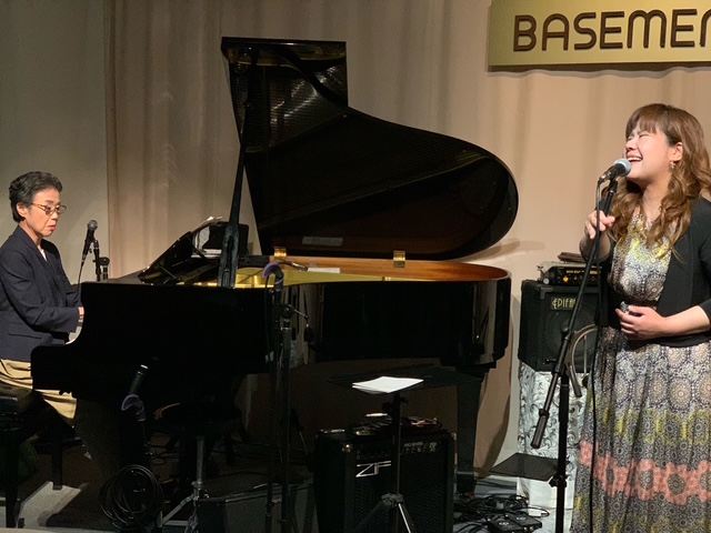 ジャズボーカリストの谷口さとみさんとピアノの園田智子さんのデュオライブ@Music Bar BASEMENTだいぶ前、YouTubeで谷口さんのプロモーションビデオ(♬「Take The "A" Train」に目と耳がテンの感動)を観て以来、ずっと生で聴きたいとおもっていた。いかにも気持ちよく、楽しそうに歌うひとである。特筆すべきは、スキャットが多彩でスゥインギー。チャーミングな見た目とはほど遠い力のある声の伸びに、聴く側は取り込まれてしまう。そこに、園田さんのピアノ。ボーカルの世界観を消さず潰さず引きたてる。このユニットではまだ2回めだというが、なんという息のあった一体感まだまだ何曲も聴きたいライブでした