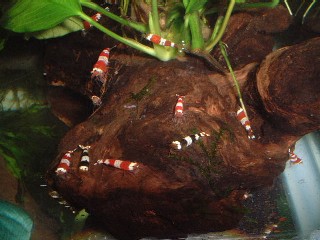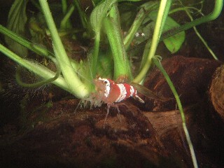 昨日は、やんやん1166さんに教えて頂いた、アクアステージ21に行って来ました。2日間限定で特売やってたんですが、他店の1/3程度の価格で驚きでした。赤ビー5匹で、なんと1470円!1人10匹までOKだったんですが、他の人も欲しいだろうし5匹にしておきました。現在のエビ水槽はこんな感じです。立ち上げから2ヶ月、少しはまともになってきたかな?でも、こうやって画像で見るとグリーンウォーターに見える・・・。実際はそんな事無いんですけどね。次は、メイン水槽からカーディナル群を!うーん、どっくすたあさんとの差は歴然ですな(^^;しっかし、我が家のカーディナル、ころころです。さてさて、おまちかねの赤ビーはこちら!流木に活着中のミクロソリウムウィンディロブの中にいました!が・・・倍率を12倍くらいで撮ったのでボケボケ・・・。と思ってたら、1匹前に出て来てくれました♪グレードは決して高くないけど、初心者が初めて飼うには十分でしょう!やんやん1166さん、良い店を教えて頂いて本当に有難う御座いました m(_ _)m今、ビッターズでも入札中で、現在権利保持出来てます。今晩には結論が出る!うーん、楽しみだ♪