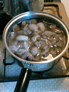 一回煮零して、再度ひたひたに水を入れた後、 醤油とみりんで味付け