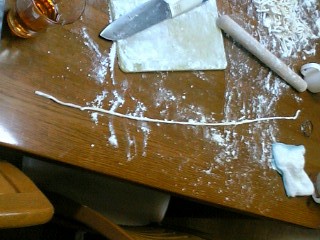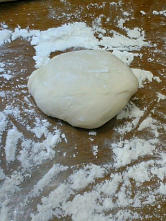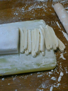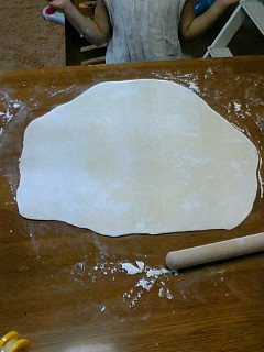 て事で、テーブルに打ち粉して 伸ばす