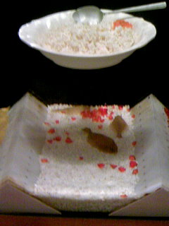 バックスクリーンが黒で、ご飯の入った器が浮いてます。