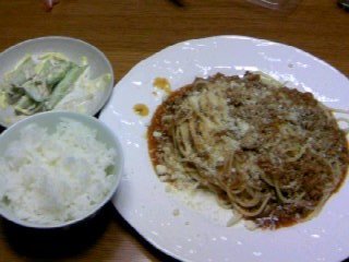 昨日は、手抜きでパスタ(ミートソース)となりました。