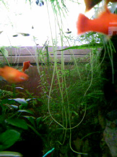 この2種類の水草で水槽が覆われ、魚達も若干窮屈そう(^^;