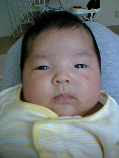 昨日の「冷や汁」にはコメントありがとうございました(o^ー^o)なかなか食べる機会ってないですよね・・・ほんとに美味しいので、もしも機会があったら食べてみてください!食欲のない夏に食べると良いです。(ってもう夏は終わってしまいましたが・・・)ご飯がすすむし、なんといってもカルシウムが豊富なんですよ!大きいんです。何がって?ウチのひかりさん・・・。生まれた時はほんとーに小さかったのに・・・たった1ヶ月半でこんなに大きくなるもの???妹が遊びに来るたびに「でかっっ!!!ひかり、でかいよ!!!」って言います・・・(^_^;)だって、もうすでに体重は4500gを超えていると思われるし、コンビ肌着なんてパッツンパッツンになりつつあるし、オムツなんて新生児用からあっという間にSサイズに格上げだよ(・_・;)お洋服、季節があやたんと同じなので、用意しないつもりだったんだけど大丈夫なのか???と心配になりつつあるよ。。。小さく産んで大きく育つのは良いことですがあまりの成長ぶりにママは驚きを隠せずにいます・・・(笑)