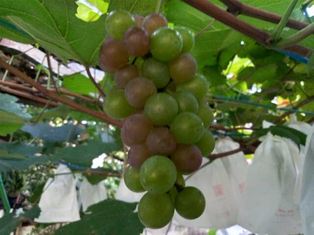 こんにちは。今日は晴れです。今日は○○です。△ブドウ デラウエア△庭のブドウが色づいてきました。1っ主幹前は粒が透明になってきていました。この状態を「水が回る」というそうです。今日は8月の一歩前なので15日が収穫だとするともう色づかないとなと思い袋を外して確認しました。色づきはいまいちですが房の1/3ほどが色づいているのが確認できました。△シコンノボタン△庭のシコンノボタンが開花しました。鉢植えなので水切れさせないように管理しないと蕾がダメになってしまいそうです。背丈は2mを越しているのですが5号鉢で育てているので水持ちが悪いみたいですよ。今日はいつも行く店が閉店するというので全品2割引きにつられて買い物に行ってきました。妻のマイナンバーカードの名前が違っていたので訂正依頼に市役所の史書に行ってきました。結構面倒でした。私は、楽天銀行の残高が100万円を切ったので年金が振り込まれている銀行からおろして振込みました。ほとんどが楽天経済圏を使っているので手動で振り込んでいます。今日も、朝一で貸農園の夏野菜の収獲に行っています。キュウリは終わりみたいですがまだ子ヅルが出ているのでそれを伸ばして見ようかと思います。それと秋キュウリも間引きして1本建てにしました。今日の日本株はPF550千円(前日比+5千円)でした今日の取引はありませんでした。イートン260株買いました。今日の予報は最高気温33℃、最低気温25℃です。今日も暑かったです。今日もつたないブログに来ていただきありがとうございました。「花、ガーデニング」「菜園」部門に登録しています。ガーデニング初心者ランキング家庭菜園ランキングにほんブログ村↑一日1回クリックして戴けると嬉しいです。家庭果樹ブドウデラウエアシコンノボタン