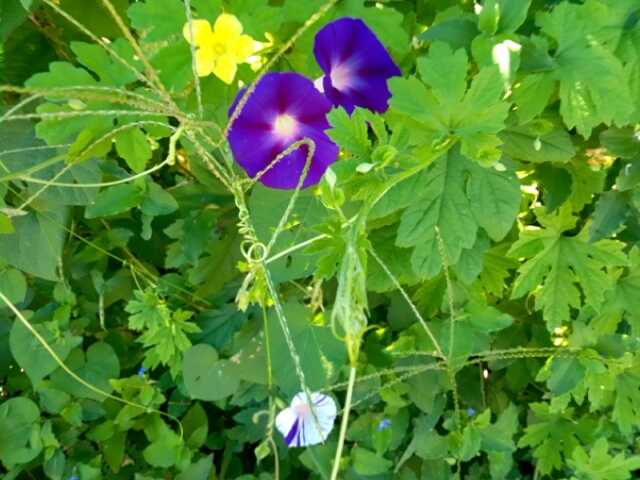 こんにちは。今日は晴れです。今日は○ルコウソウ○です。△ルコウソウ△小型の朝顔です。ゴーヤの手に絡まって勢力拡大している花です。色々な花色になっています。自然に交雑するのでしょうね。しかし丈夫です。勝手に生えて花を咲かせています。△ルコウソウ△良く垣根に絡まって咲いているのを見かけます。種は朝顔そっくりですね。勢いをゴーヤと比較すると勝っていますね。△夏野菜の収穫△今日はオクラ2本、キュウリ、ナスが各1本取れました。インゲン3本、大玉トマト1個、ミニトマトは13個です。畝間に水やりしました。渇きが早いですね。今日の日本株はPF546千円(前日比+7千円)でした今日の取引はありませんでした。今日の予報は最高気温34℃、最低気温26℃です。暑かったです。広報で外に出ないように注意がありました。今日もつたないブログに来ていただきありがとうございました。「花、ガーデニング」「菜園」部門に登録しています。ガーデニング初心者ランキング家庭菜園ランキングにほんブログ村↑一日1回クリックして戴けると嬉しいです。花ルコウソウ夏野菜の収穫