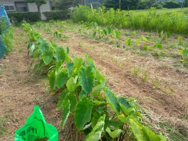 こんにちは。今日は曇り晴れでにわか雨です。今日は○里芋○です。△里芋△雑草に覆われていた里芋を草から救出しました。朝6時から9時間働きました。ようやく里芋の葉に光が当たるようになったと思います。自然農法でしたがあまりにも育ちが悪いので自家製米ぬかぼかし肥と鶏糞を入れています。買った草は、株元に寄せています。里芋はほとんど害獣に合わなかったのですが葉がキョンに食べられていました。感謝が足りないのでしょうかね。梅雨の時期の雨量が少なかったためでもありますね。ですから今年はトマトが良いですね。今年最後のサツマイモを本日植えました。芋付きがメインです。スナップエンドウの残材を片付けてその跡地に植えました。ソラマメの撤去を行いました。今年は1鞘も口に入りませんでした。猿が侵入し食べてしまったからです。でも食べた残しカスに来年用の種が取れるかもと思い収穫しました。ゴーヤとツルありインゲンのネットを張りました。トマトの脇芽処理と誘引固定をしました。アイコや千果の実が収穫できました。アスパラガス8株を植え付けました。曇りにもかかわらず4Lの水を飲んでいます。暑すぎますね。△カンゾウとグラジオラス△作業中の畑の下の畑です。手前がカンゾウで奥がグラジオラスです。毎年この畑で義兄がそばを作っています。今日の日本株はPF530千円(前日比+3千円)でした今日の取引はありませんでした。今日の予報は最高気温31℃、最低気温26℃です。とにかく暑かったです。今日もつたないブログに来ていただきありがとうございました。「花、ガーデニング」「菜園」部門に登録しています。ガーデニング初心者ランキング家庭菜園ランキングにほんブログ村↑一日1回クリックして戴けると嬉しいです。家庭菜園里芋カンゾウグラジオラス