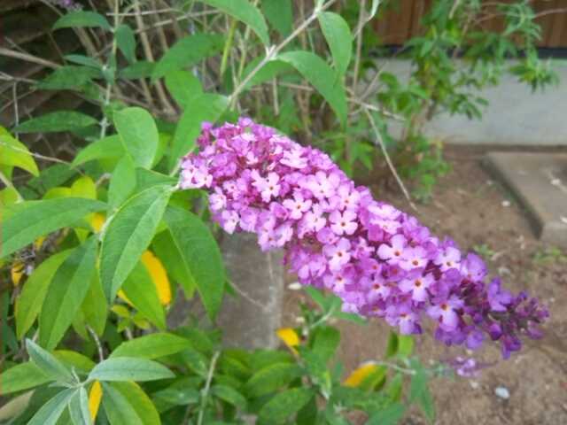 こんにちは。今日は晴れです。今日は○ブレッドレア○です。△ブッドレア△道の駅でこのブッドレアを見つけました。紫の花なので目立ちますね。だいぶ前から咲いていて終わりそうな花も見られます。△キュウリ△キュウリの吊り下げ栽培をしています。昨日実家の畑に行き採らなかったので今日は収穫いっぱいです。1本の糸に上下2個の洗濯ばさみで茎と紐を一緒に挟んで固定します。毎日10cmくらい伸びるのでこの洗濯ばさみを先端方向に移動させます蔓は移動に邪魔なので切除します。子蔓や雄花は早めに切り取ります。この方法だと大量に採れることはなく毎日平均1株で0.5本くらい取れます。7株植えてあるので3~4本が採れて無駄なく利用できます。最盛期なので隣からもいただくこともありますが大量消費できる「なます」にして消費しています。△夏野菜の収穫△キュウリは8本、なす5本、ジャンボピーマン2個平さやインゲン2本、トマト、ミニトマト各1です。今日も畝間に水やりしました。キュウリに曲がり果出てきました。水不足のためかもしれません。大玉トマト1個が赤くなっていたので収穫しましたがヘタのところが虫食いでしたね。キュウリは毎日下羽を2枚欠いています。他の畑のキュウリはだいぶ白くなってきているのに対して我が家のキュウリは元気いっぱいですね。今日の日本株はPF千円(前日比千円)でした今日の取引はありませんでした。今日の予報は最高気温℃、最低気温℃です。今日もつたないブログに来ていただきありがとうございました。「花、ガーデニング」「菜園」部門に登録しています。ガーデニング初心者ランキング家庭菜園ランキングにほんブログ村↑一日1回クリックして戴けると嬉しいです。花ブッドレアキュウリ夏野菜の収穫