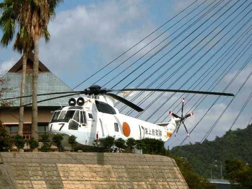 さて、ここからはレンタサイクルで隣の伯方島を目指すことにする。自転車に乗るのって何年ぶりだろう??(記憶にない)本当はドロップハンドルの自転車を借りたかったが、そんなタイプのものはなく、仕方がないので27インチのママチャリを借りる。(レンタル料は500円、電動自転車は800円、それと保証金1000円がいる。ただし保証金は借りた場所に返却すれば、返還される)ママチャリはちょっとがっかりだが、気分だけ太田真一選手になってペダルをこぐ。(太田真一選手=競輪 埼玉県75期 1999年高松宮記念、ケイリン・グランプリ優勝 気持ちのいい行きっぷりが魅力、おいらも車券で随分とお世話になった。)自転車に乗って気づいたのが、寄り道大好きなおいらに都合がいい・・。この時期は、乾いた風がなんとも心地いい。上浦町の道の駅のすぐ隣に面白いものがある・・。通称「上浦町いろは坂」を駆け上がる。 海上自衛隊のヘリ HSS-2上浦町名誉町民の佐藤特義さん(故人)によって昭和58年3月9日に寄贈されたという。アメリカ シコルスキー社製で三菱重工で組み立てられた。潜水艦捜索などの攻撃型ヘリで、4人乗り 19100ポンド(約8・7t)最高速度は144ノット(267km/h) 600海里(約1100km 東京-鹿児島間)の航行が可能大三島でこんなものが見られるとは思ってなかったぜ・・。初っ端から寄り道となったが、このあとは本当に9・2km先の伯方島の道の駅目指してペダルをこぐ。明日に続く・・。