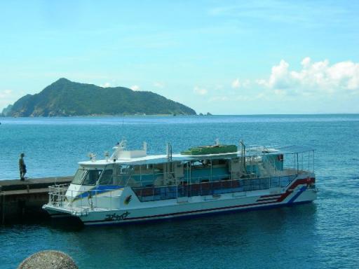 さて、1300円/人という、高価なエサを食わされてしまったが、それでも愛南町のいい思い出となったのは、このあとのユメカイナでの宇和海海中公園と素晴らしいパノラマを思う存分堪能できたからだろう・・。 ユメカイナ 奥の島は鹿島ユメカイナは前半、宇和海の中を見せてくれる。クマノミや亜熱帯に分布する魚たちが泳ぐ姿をたっぷりと見せてくれる。サンゴの色はちょっとイマイチだったが、マリンブルーの海は最高だった。 ちょうどおいらたちのそばをウミガメが横切っていった!!角度的に、おいらと隣の3~4人くらいしか見ることができなかった。クルーの人が「ウミガメはあまり見れないんですよ、ラッキーでしたね。」実は、こっちに座ろうといったのは母だった。年をとっても勘はいいようだ・・。後半はクルージング気分で宇和海を堪能。20ノットの船からの撮影は、足元がゆれるので難しかったが、早朝の雷雨がウソのように晴れ渡り、空と海の青いハーモニーも抜群だった。 うっすらと見えるのが九州、おそらく大分県佐伯市あたり・・。予想外に時間を費やしたので、このあとの道の駅めぐりは「時間短縮モード」殆どスタンプ・タッチアンドゴー状態だった。後日ダイジェスト版にて・・。