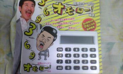 世界のナベアツ「オモロー電卓」トイザらスで1499円で購入!!もうすっかりお馴染み、世界のナベアツ オモロー電卓、おいらも手に入れました。笑えます、オモローです、ボタンの押し間違いもありません。そして何より、社長に図面を渡されても、楽しく段取りができます数字のボタンを押すと、ナベアツが発声します。そして3,6,9を押すと「さぁん!」「ろくぅ!」「きゅぅぅ!」とアホ声で発声します。さらに「=」のボタンを押すと「オモロー!!」笑えます・・・。(癒し効果はありませんが)ひとつ心配なことは・・・。いざ電卓が必要なとき、遊びすぎて電池がなくなっていないか・・。