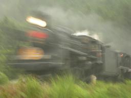 8月16日SLやまぐち号の写真を撮りに、早朝より出かける。道の駅めぐり・・というより「てっちゃん」気分の日帰り旅行といった感じか・・・。撮影場所は、山口県阿武郡阿東町の道の駅「長門峡」に決める。しかし通過時間(11:45頃)20分前頃から雨が降り始めた・・。20分も濡れたくないので、屋根のあるところに退散する。3分前・・。そろそろスタンバイ!汽笛が聞こえてきたさぁ、文字通り一発勝負シャッターを切る、タイミングはいい感じだぞだが・・。直前の雨でシャッタースピードが遅くなった上に、手が動いてしまった撮った写真は見事に失敗 いくらなんでも、これじゃ・・・このまま家に帰る気がしない。このあとおいらは、ムーヴでやまぐち号を追いかけて、津和野(やまぐち号の終着駅)で待ち伏せることに・・。(12:50頃津和野到着、長門峡から約30km)途中阿東町徳佐付近でJR山口線と国道9号線と並走する区間があるが、そこでやまぐち号に追いつき、サイドバイサイドの展開になった。津和野での待ち伏せ、成功と思ったが・・。今度は「クルマが停められない。」すでにてっちゃんたちが車を停めているので、写真を撮ることができなかった。SL捲りには成功したが、詰めが甘かった。津和野に到着したやまぐち号が、新山口に向かって出発するのが15:30過ぎ・・。3時間弱あるので、津和野の道の駅「津和野温泉なごみの里」で時間を過ごす。さて、文字通り「ラストチャンス」になった。とにかくブログに載せられるような写真を撮りたい。15:15やまぐち号より一足お先にムーヴは津和野を出発。16時過ぎに通過するJR徳佐駅近くでやまぐち号を待ち伏せる・・。16:00過ぎ、汽笛が聞こえてきた。さぁ、ラストチャンス、失敗は絶対ダメだ。 う~ん失敗したくない一心が強く、ただ撮っただけって感じ・・。この日のやまぐち号はC56(ポニー)とC57(貴婦人)のツープラトン運行・・。それが撮れたのはよかったが・・・。(微妙)おまけ 其の直後、振り向きざまにもう1枚 このあと、再度やまぐち号を追いかけて、もう1枚撮れないかチャレンジ!しかし、道の駅「長門峡」付近はやっぱりてっちゃんたちのクルマで、またしても停められず。仕方がないので、もう一駅下ったJR篠目駅で三度待ち構える。撮った写真は、なんとフロント部分が、駅の看板と被ってしまったここでやまぐち号は数分間停車、其の間にフロント部分のアップを撮らせてもらった。 なんとも気忙しく走り回ったものだが、とりあえずの成果はあったか・・。機会があれば、またやってみたい。