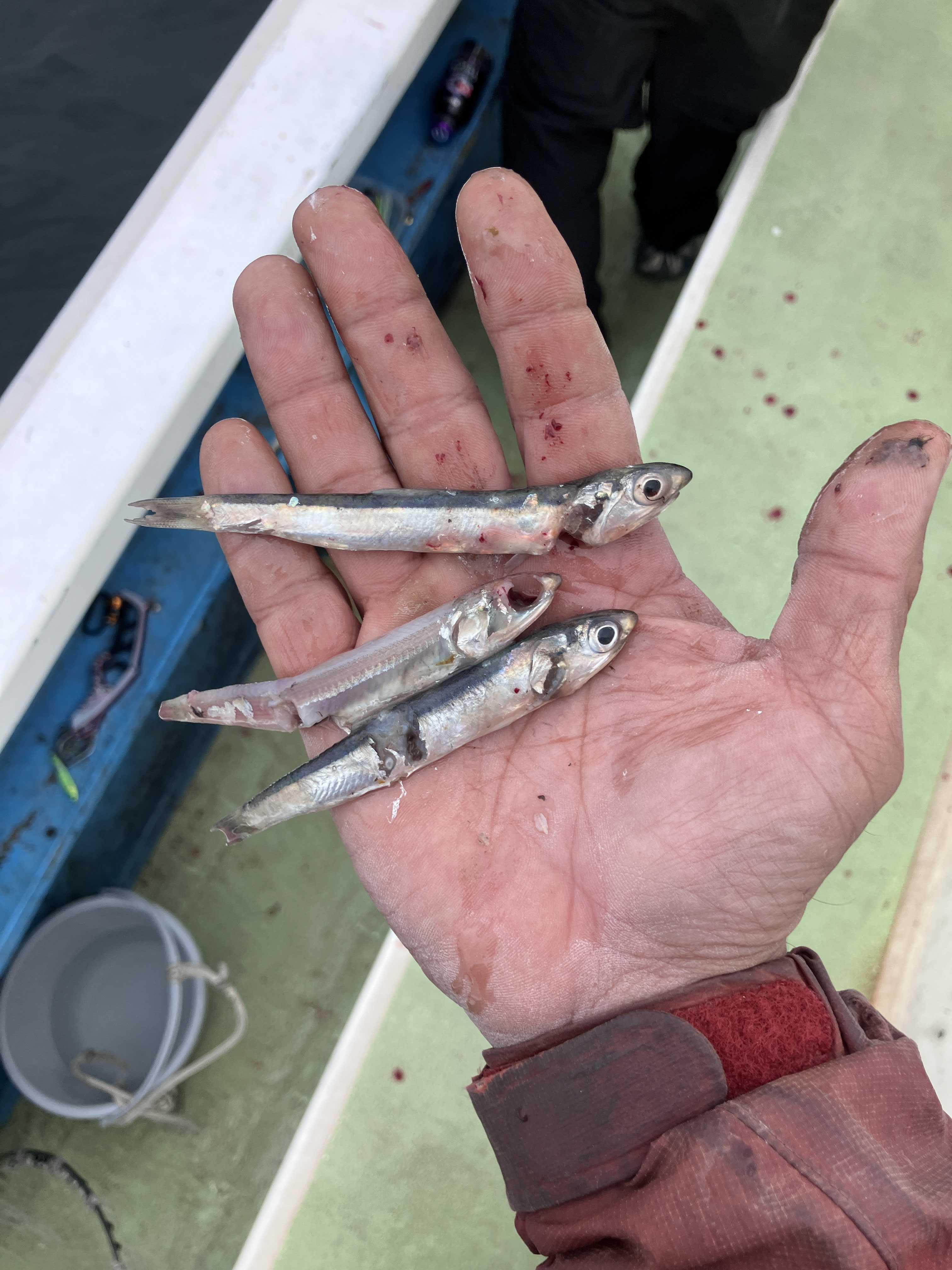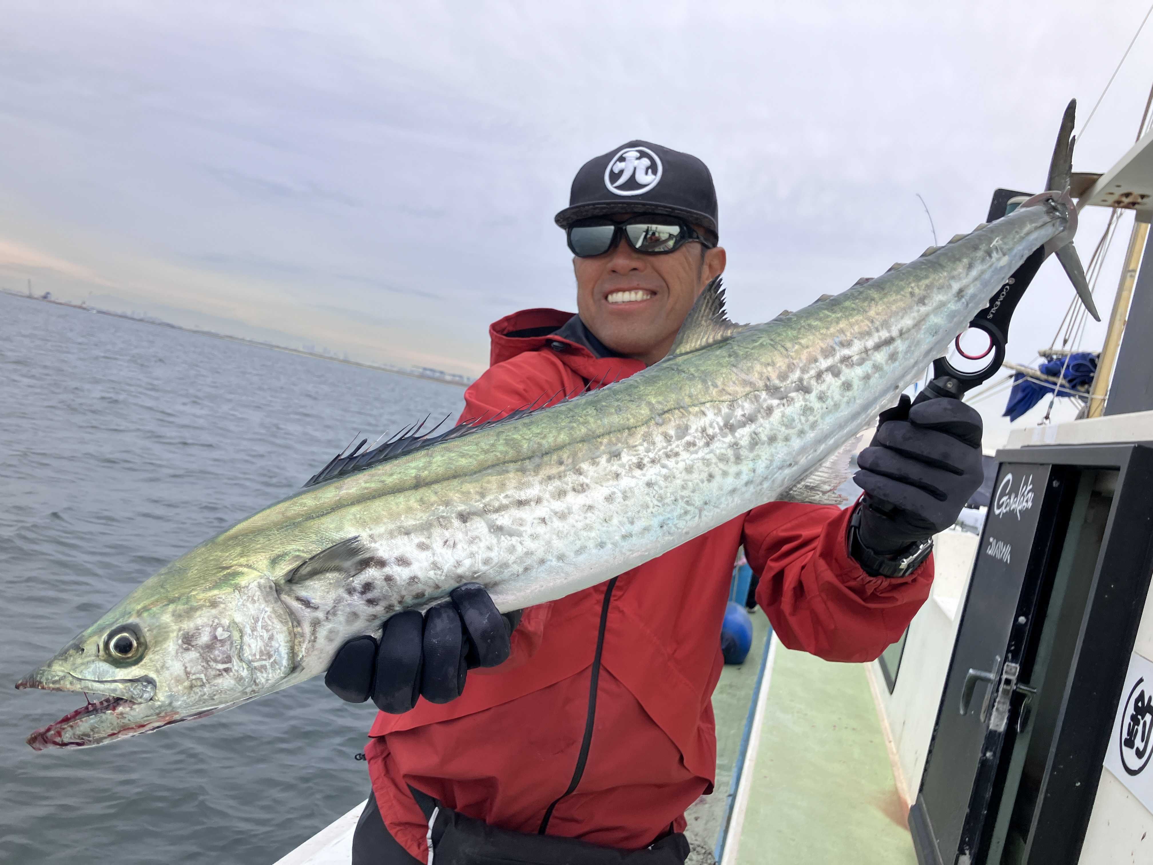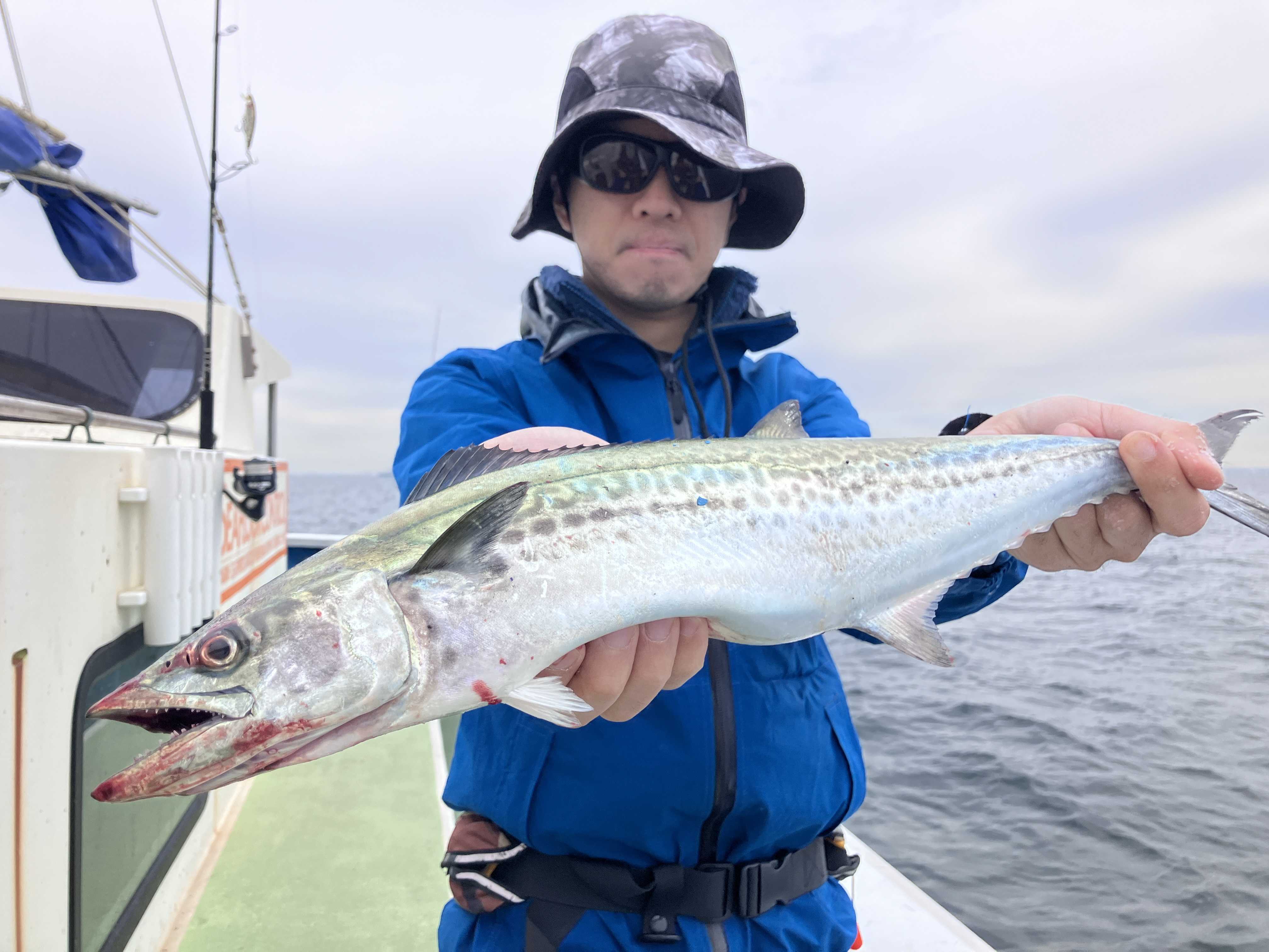 今日もデカイの狙いで行ってきました。朝はちょろっとハネ見えた所で開始すると最初の流しでヒット有りますがバラシ...流し返してリーダーカット...その後は反応探してウロウロやりますがサゴシだったりイナダだったり。エサも極小サイズでこれは違うなあ~ しばらく探して周りますがなかなか良い所見つからず。差し入れのケーキ食べながらクルージングでした。後半、お土産サゴシ釣りの方が良かったかなあ~ と後悔し始めたころ、単発ですがデカいサワラのハネが見え、広範囲に太いのデカいのハネだしました。まばらな感じで広く跳ねててなかなか狙いを絞れませんが、終盤になってやっと3名様連続ヒット! 無事トリプルキャッチの後、しばらく間があって最後にモンスターサイズのヒット有り! パワーの有る魚でタモ直前で何度も抵抗を見せ、あと一歩のところでおっぱずれ~ 惜しかったなあ~