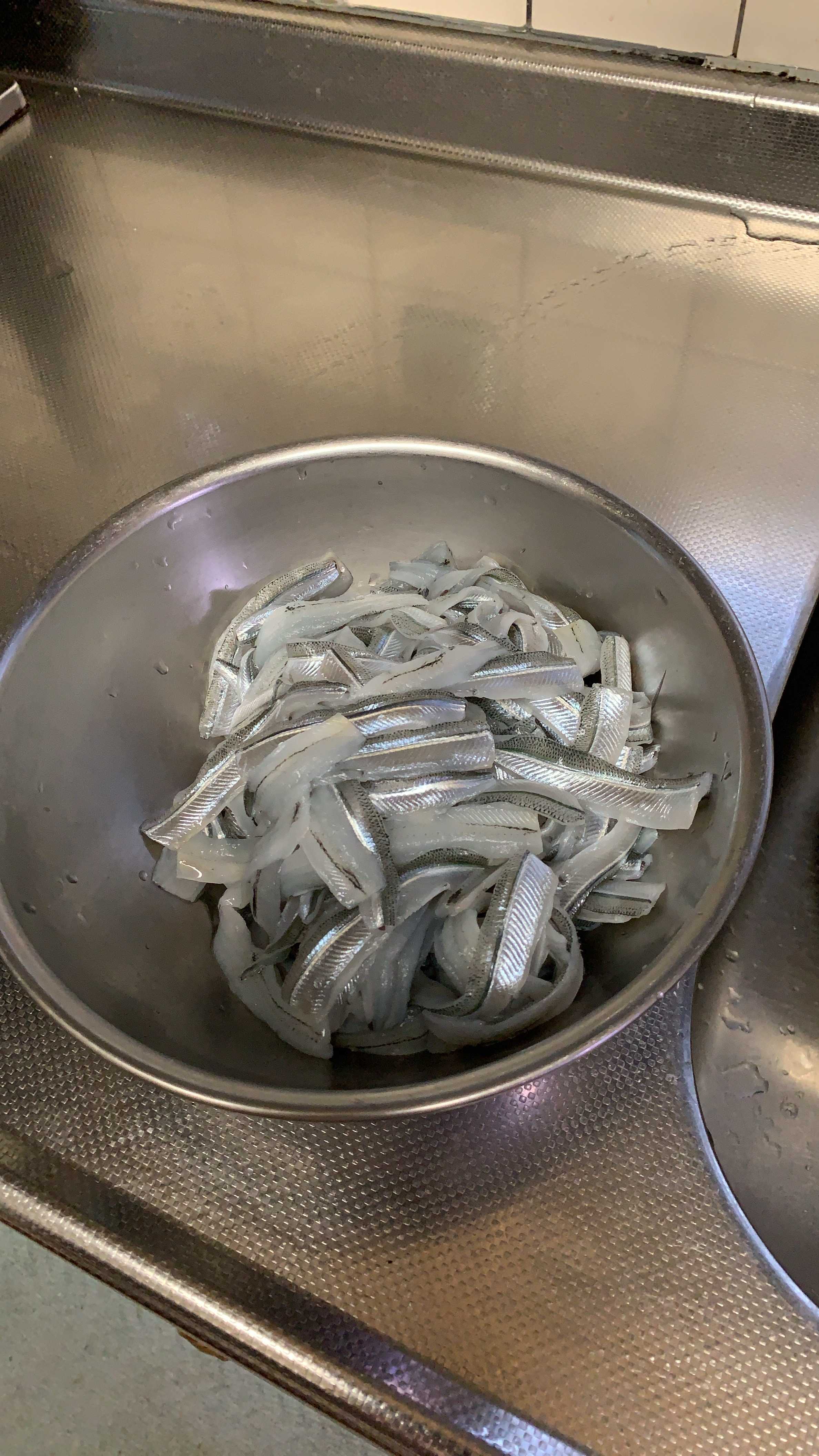 今日の釣果は、162匹。まだまだ小さく細い。