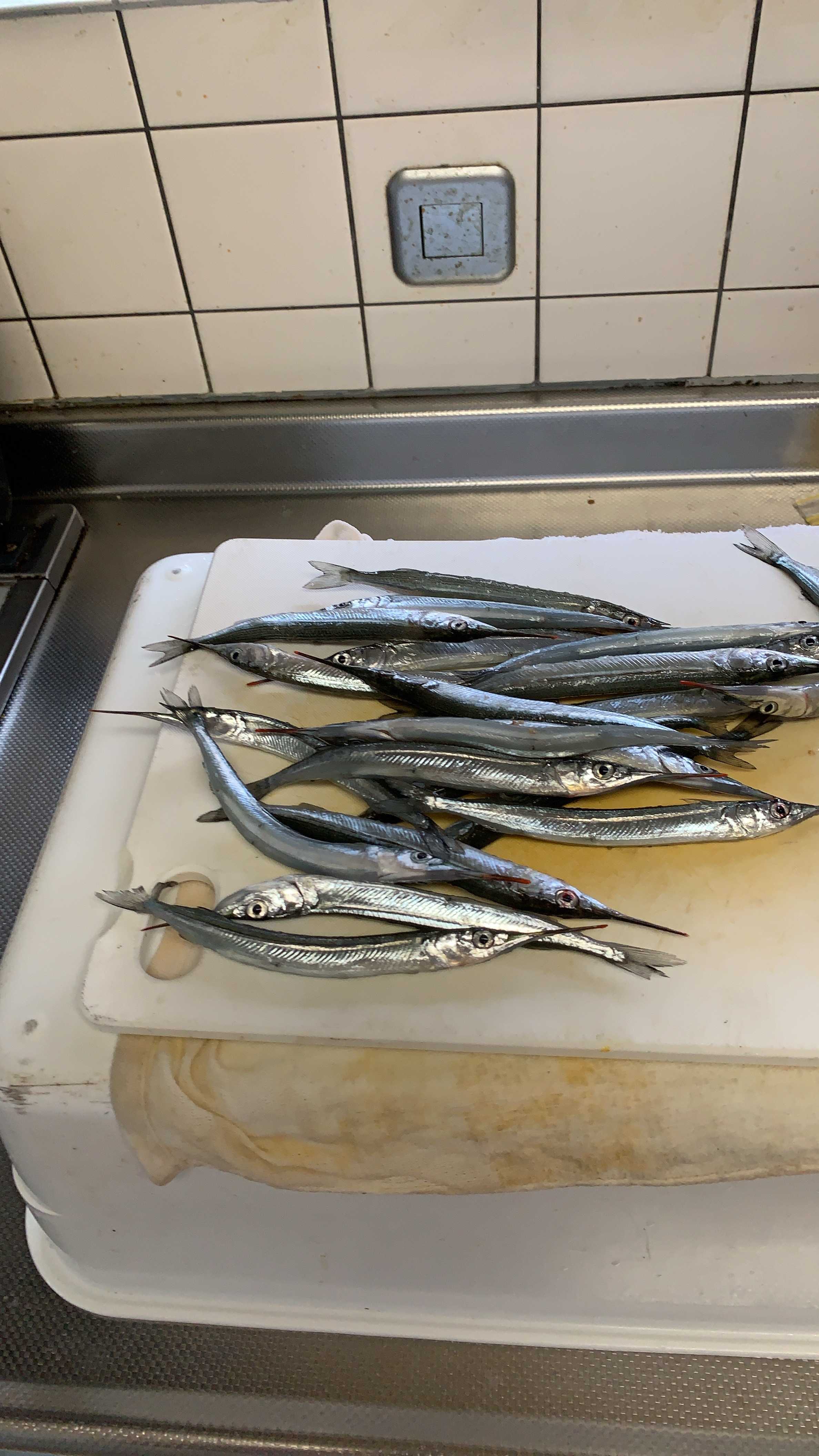 途中、ダツに仕掛けを持って行かれたり、釣れたサヨリを何かにくわえられたり、なんだかんだありました。