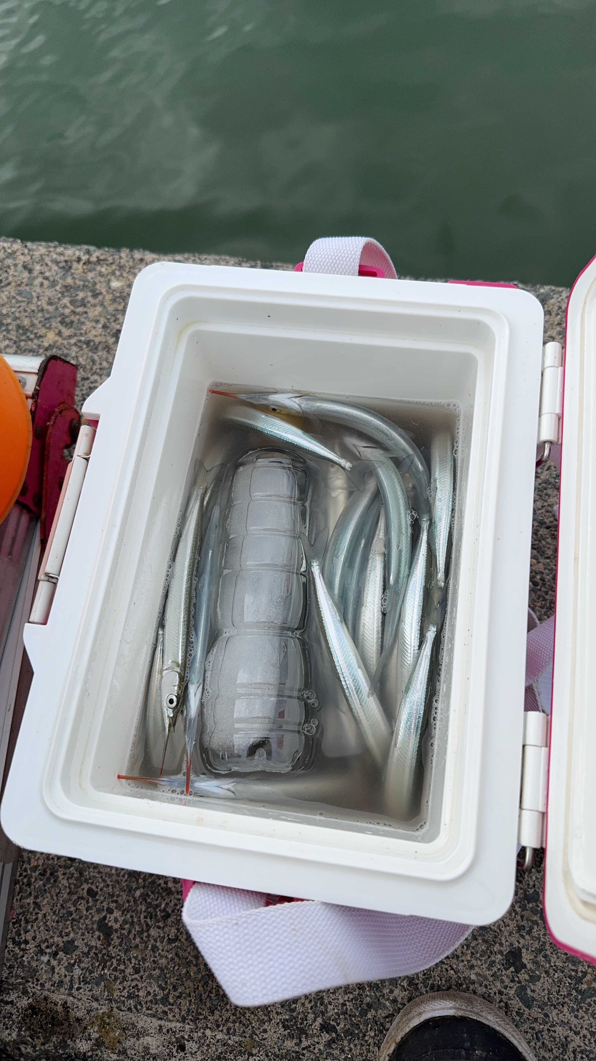 9時、サヨリを入れた小さなクーラーから大きなクーラーへ入れ替え。