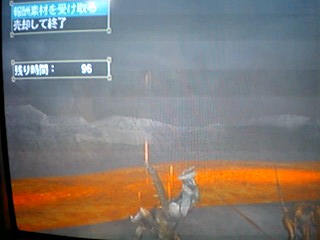 どうも。夏休み全開です。と言ってもひたすらに遊んでるわけじゃないんですが。てか、ひたすら遊べたらどんなに良いか・・・(笑ま、平日は塾で予定が詰まってる代わりに土日は遊べるからいいのですがね。勉強もしてますが。さて、昨日は久々にドスをやりました。3回か4回くらい火山のドスイーオスに行って掘りまくってましたね。そしたら太古が計4つ手に入りました。片手と大剣とボウガンと・・・後1つなんだったっけ?(知るかまあ、いいや。あとは火山ラージャンにも行きましたね。1度だけ。パーティーの一人が行ったことないからって事で行ったのですが3死終了。俺も1度死にました。orz昨日のクエストで俺が死んだのはその1度きりでしたが。やはりラージャンは俺には強すぎるな・・・ていうか防御力がやっと200超えたってのにこれじゃな・・・ていうかですね。防御200を超えるためにキリン脚を作ったのですよ。何て言うか。。。かなり微妙。白い長ズボンってのは良いんだけどさ・・・内腿見せるなよなっていう・・・走ってると時折見える肌色に悪寒を感じずにはいられません。この画像は2戦目か3戦目のドスイーオス戦の時に討伐の寸前に大剣の人から斬り上げられて飛んでたら報酬画面がこんな感じになってました。(笑まあ、何ていうか、、、ネタになったから良かったなと。(ぇそれではこの辺でー。おしまい
