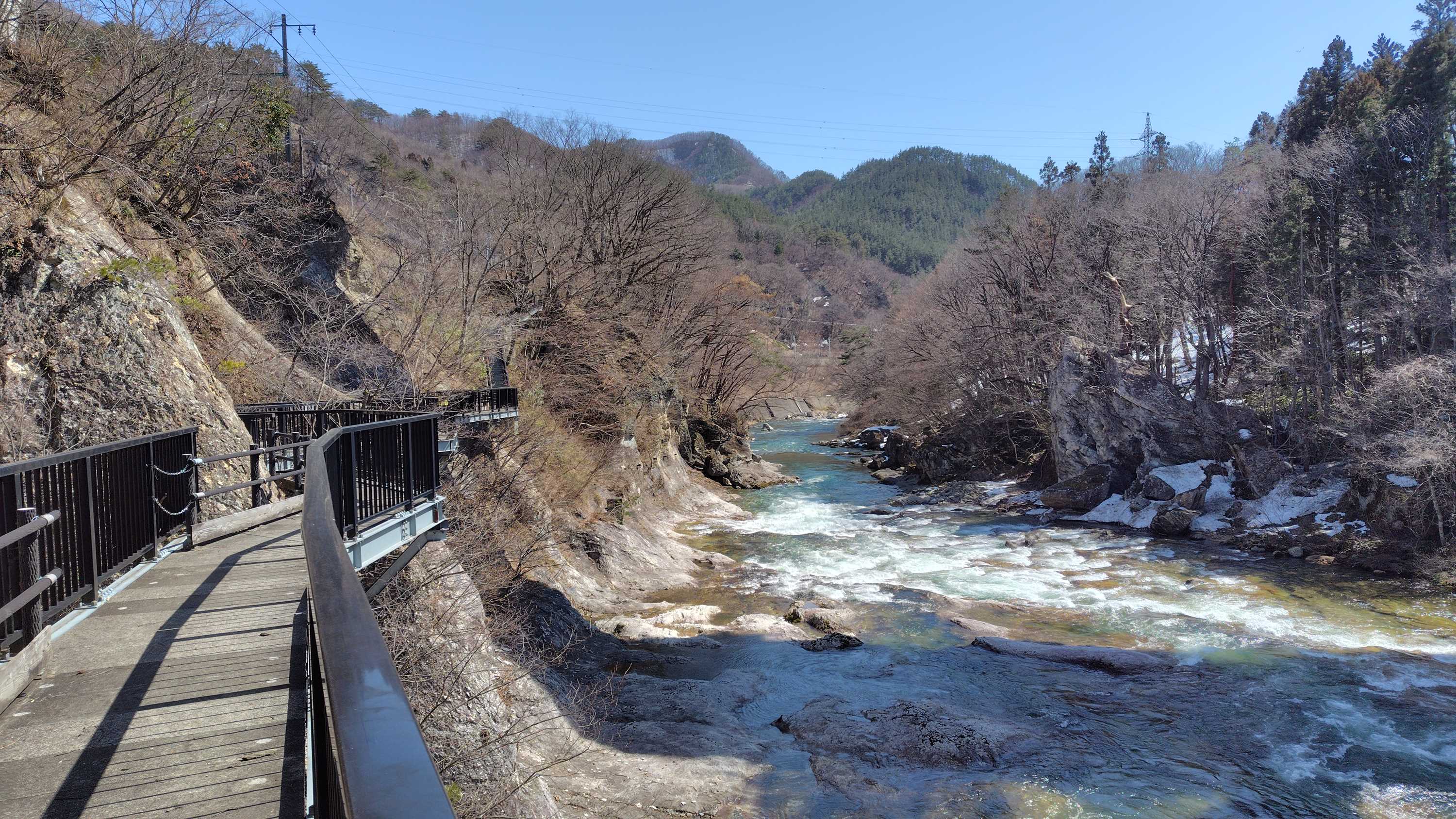 春らしい暖かい日が数日続いて、周辺の雪が大分溶けて来たので久しぶりに諏訪峡遊歩道に