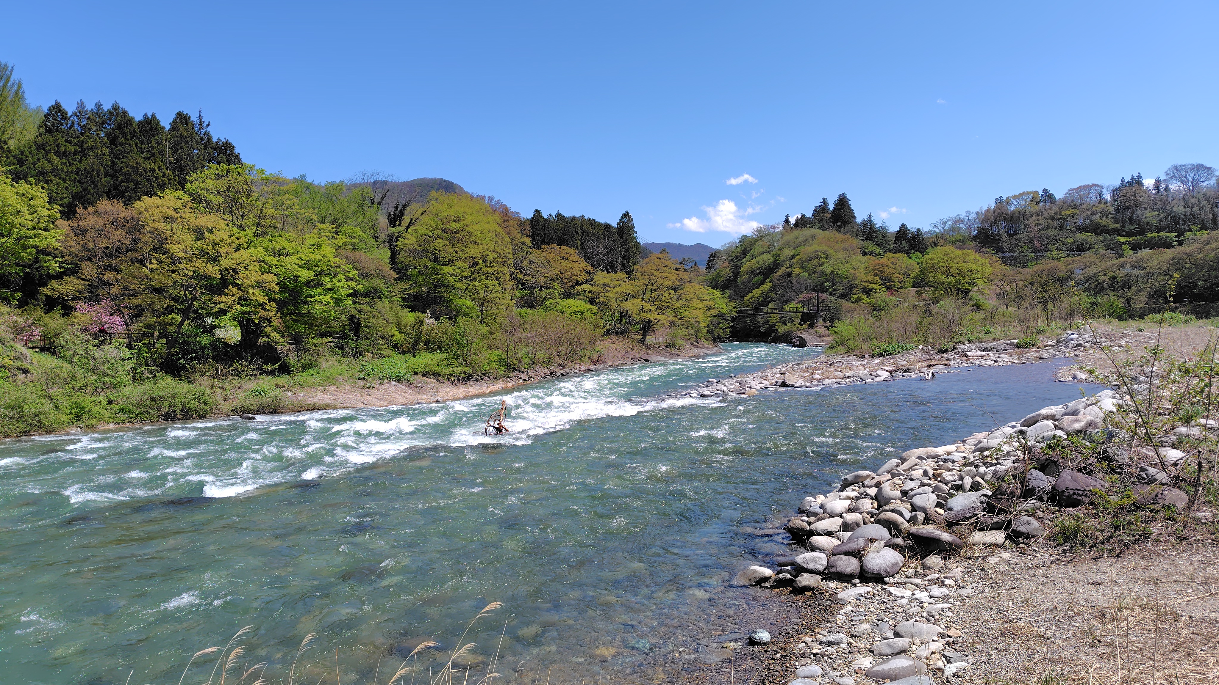 ラフティングの集団は通り過ぎてしまった後、ついでにSLも通過してしまった後でした。