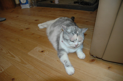 おくさんに朝からお姫様抱っこされて、しあわせ感にうっとりしているみーちゃん。おくさんとみーちゃん、最近、似たもの同士だなあと思う。反応やしぐさ、発する声のトーンがそっくりなのである。思わず笑ってしまうことがある。抱っこから床に下ろされて、みーちゃん何を思ったか、奥さんの足をぺろっとなめたそうである。今までなかった行為である。「友愛」の表明なんだろうか?