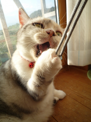 朝、窓辺のみーちゃんの写真撮影を試みる。と、その時、パナソニックのカメラのストラップに攻撃をしかけてきた。猫パンチしたり、かみついたり。おかげでいつもと違う表情が撮れた。でも、顔がこわいぞ~!みーちゃん『こんな写真を公開する気なの?』