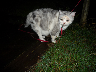 雨あがりで、日も暮れてしまったけど、待望のお散歩タイムをゲット!みーちゃん、お鼻をひくひくさせて外気を楽しむ。9月も去ろうとしてるんだねえ。