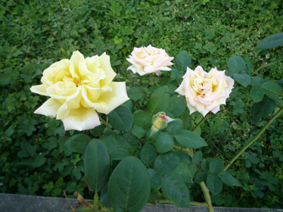秋になって、庭のバラちゃんたち、また元気になってきました。イエローっぽいバラちゃんも、青空のもと、良い雰囲気で咲いています。バラって品位があって、毎日眺めても飽きないなあ。無農薬有機栽培のバラちゃんたち、もしかしてうまくいってるのだろうか?