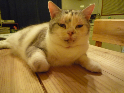 雨模様。今晩も、みーちゃん、散歩を要求したけど出してもらえず。ちょっと不満顔。玄関開けても出ていかないことがわかっているからね。