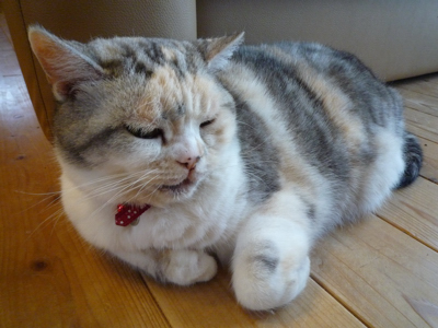 うちのルナたん、昨年の5月12日は、体重9,3キロでした。肥満。獣医さんからは、8キロから8,5キロが理想体重だと告げられました。それ以来、副食の缶詰をやめました。間食もなし。サイエンス・ダイエットという乾燥エサのみです。朝と夕方、1回87グラム程度、キッチン用計量ハカリでエサの重量を確認してます。昨年10月頃からルナたんの腰にくびれができてきました。今日、ためしにルナたんを計量してみると・・・・。8,5キロ。ぎりぎり理想体重の圏内でした。