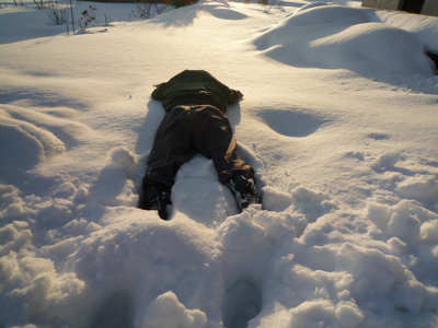 雪中ダイブしました。自身に対する罰のつもりです。こんな罰しかイメージできませんでした。発想が貧困だな・・・。わたくしBIRDはayaさんから、愛のバトんを手渡していただきながら、次の方々につなぐことができませんでした。安請け合いして無責任だったなあ・・・と深く反省しています、はい。