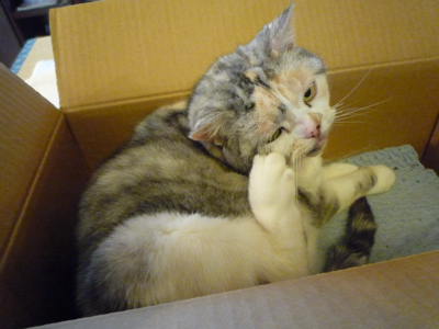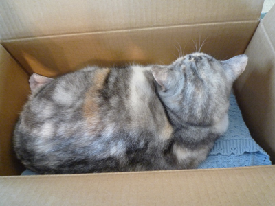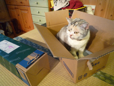風が吹いたり小雨が降ったりしている。昨日のような快晴は、週間天気予報を見る限り、しばらくなさそう。ルナたん、ちょっとさびしそうな表情を浮かべることがよくある。抱きしめてあげたくなる。今朝は奥さんがルナたんを持ち上げて抱っこした。毎日、2人の飼い主にかわりばんこに、あれこれかまってもらえるんだから、ルナたんはしあわせな方だと思うよ。おかげさまで、とても素直な子に育っている。みーたんは、今朝6時前にBIRDの部屋に起こしに来てくれた。よく通る声(ソプラノ)で何度もなくので、起きないではいられなくなる。朝のお散歩は、みーちゃんにもリードをつけて、ルナたんと同時に玄関を出た。今はお気に入りのダンボールのマンションの中。
