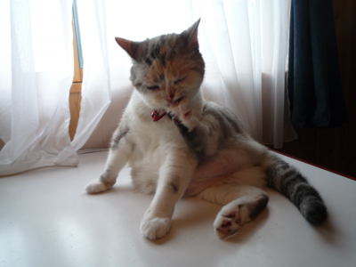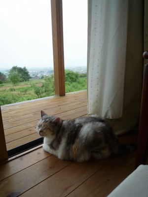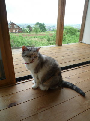 朝から草刈り機で庭と畑のあたりに伸びている草を刈った。お散歩してても脚にからむほどで困っていた。30分ほど草刈りをして、ようやくすっきりした。香ばしい牧草のにおいがあたりに漂う。快晴のもと、この牧場じみた雰囲気、時間が好きだ。バラの木々、野菜の苗たちも、存在をくっきり浮かび上がらせる。居間に戻って、ガラス窓を全開にする。今日は平年並みの気温だそうだ。6月の微風が部屋にどっと流れ込む。ルナたんの舌は長いね!!一瞬を切り取った画像なんだけど、写真で見るとびっくりさせられる。みーちゃんは、網戸のところで外界をウオッチング。カメラを向けると見返り美人を決め込む。決めポーズってところかな?流し目が悩ましいよ!!