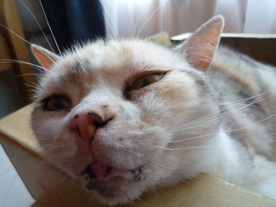 朝5時に、みーちゃん、ルナたんはお散歩に出る。居間にもどってお食事。その後は、室内をうろうろして・・・・。BIRDがテレビ見たり、食事の用意をしたり・・・ちょっと目を離すと・・・。姉妹は二人とも寝ている確立が高い。健康優良児である。iPhoneの操作方法が分らなくなると、インターネットで検索したりもする。Q&Aなんかも出てきて、BIRDと同じ疑問を他のユーザーも持つんだあ、と安心したりする。ダウンロードした「我輩は猫である」。iPhoneの画面で100ページくらい読み進んだ。携帯の狭い画面でも、アプリのおかげで存外読みやすい。何年も前に読んだことのある本なのだが、文章がおもしろい。べらんめえ調で、適度に庶民のお下劣な言葉も飛び出す。イギリスの文学の影響が色濃くて、これがまた気持ちよい。ギャグだかジョークだかが、各ページに満載で、にんまりしてしまう。お嬢様猫、やくざ猫も登場。猫好きにはたまらない小説であります。猫のしぐさ、表情の描写がすんばらしい。舌を巻く。