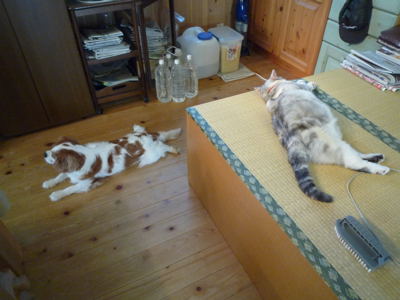 自宅では、エアコンのお世話になる毎日。庭や畑に出て、ちょっと作業して居間に戻っても、汗はすぐに引かない。エアコンと扇風機の両方を一気にスイッチオンすることになる。まあ、こんなこと毎日やってても、1ケ月の電気代は1万円以下で済みそうな情勢。汗が引けばさっさと除湿に切り替えるし。みーちゃんは、居間の隣の客間にある窓辺のテーブルの上でうたた寝するのが大好きである。しかし、冷房かける時だけは、客間のドアも開けっ放しでは、冷房効果半減なので、強制的に居間に移動してもらう。夕方、奥さんはルナたんだけを散歩に連れ出す。夜になってBIRDが帰宅すると、みーちゃんは、『お外の空気を吸いたいよ~!』と一生懸命アピールする。でも、BIRDが疲れている場合は、せっかくのアピールも無視される。みーちゃんは、朝だけお散歩パターンが最近は多い。水道代、ガス代はそれぞれ1500円くらいで助かる。他の家庭の様子が時々耳に入ってくるけど。こんなに安くつくのはめずらしいらしい。