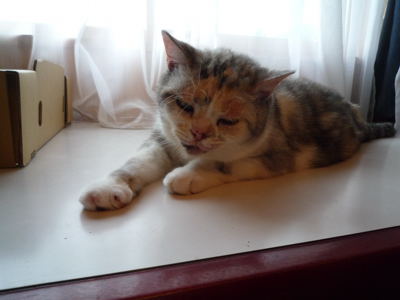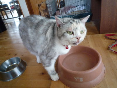 昨日の朝、地元の電機屋さんのにーちゃんに電話しました。3日ほどは待たねばならないかと思っていたら・・・午前11時30分に来てくださいました!!ナショナルの、セルフクリーニング機能付きのエアコンの前部を開いてちょっと見回して、すぐに対処。台所と同じスペースを居間が共有してるので、フィルターに油よごれが一面に付いていたそうです。たわしで4枚のフィルターを、水だけで洗って乾かしてエアコン本体にセットしなおしたら、ちゃんと冷風が勢い良く出るようになりました!!1年に一度くらいは、フィルターをたわして水洗いしてくださいね、と言われました。セルフクリーニングに頼りきりで、フィルターのチェックをしてなかったという・・・お粗末なユーザーでした。エアコンの修理・・・というより調整代金は4200円でした。たいしたことない出費でほっとしました。5年やそこらで壊れるわけないですよね。これから10年以上、このエアコンちゃんには元気に働いてもらいたいと思います。ご心配かけて、すみませんでした。>ALL居間が涼しさを取り戻して、みーちゃん、ルナたんも大喜びしています。今朝収穫したきゅうり、トマト、いちじくも掲載しておきますね。
