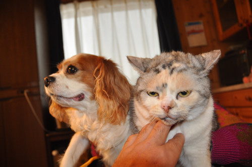 皆様、明けましておめでとうございます。本年もよろしくおねがいします。昨日まで、雨なんぞ降ったりして、雪はかなりとけました。今日はくもりの予報です。みーちゃん、ルナたんの2ショット画像を載せておきますね。年賀状のデザインをどうしようか迷っていた年末に撮影したものです。結局、この画像は年賀状に使用せず、ブログに使用したことがあるみー・ルナの例のデコレーション画像を採用しました。