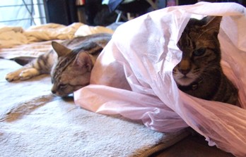 しばらく前から、キャットウォークなるキャットタワーがあるのは知っていた。けど、高いしなぁ、と思っていたら、先日ペットショップで、実物を見た家主が、「2匹にさ、買ってあげない?」ふっふっふっ。おかげ様でボーナスも頂けたことだし、じゃあ、とネットで安価なのを見繕って、注文~♪ちょっと早いけど、プレゼントの時期だしね、と、先週末に、組み立てたのだった。 うん、なかなか良い具合。って違うよ、その箱の中身が、プレゼントなんだよ(苦笑)。ネット事例を見ると、組み立てには30~40分くらいかかるらしい。と、覚悟をして、早速、組立開始。・・・だーかーらー。そーやって邪魔してると、出来上がらないよ? 応援してるだけだにゃ。 まだなの?そこに居るなら、猫の手も借りたい、とはよく言ったもの。・・・だからねマロンちゃん、そのネジ失くしたら、出来上がらなくなっちゃうんだってば。 だってワタシ、ネコだもん。そんなこんなで、でもなんとか完成~♪パチパチ居心地は如何でございましょう? あ! 鳥さん!!良ございました、で、お嬢サマは・・・ ワタシはここで。違うから(_ _;)。では再度。スタンバイして頂いて。居心地は如何でございましょう? 悪くはないわね。 ボクもハンモックがいいにゃ…まぁなんとかOKは貰えたようで、一安心(^ ^;)。頼むから、勢い余っての落下にだけは気をつけて、譲り合って(←ムリ)遊んで頂ければと思いますです、はい。