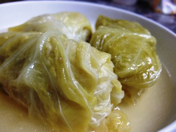 何故か今まで作ったことのなかった料理が、ロールキャベツ。なんでだろう?で、何故か急に食べたくなり、キャベツ丸ごと1個と、豚挽肉200グラムを買ってきた。基本的には、ハンバーグ種(餃子種とも言う)を、キャベツで巻いて、煮込めば良いんだよね。(←アバウトにも程がある…orz)ワタシ「えーっと、煮込むスープは、コンソメ味、クリーム味、トマト味、のどれが良い?」家主「コンソメ」ワタシ「中身の種って、挽肉の他には何が入ってるっけ? ふつー」家主「さぁ・・・。とりあえず、タマネギ入れといたら?」という作戦会議をするにはした。・・・まぁ、なんとかなるでしょ・・・(^ ^;)。以下は備忘。まずは、キャベツ丸ごと1個を、芯だけくり抜いた状態で、その部分を下にして、そのまま鍋で丸茹でに。生のままで剥いてから調理を始めるレシピもある気がするのだけれど、前にどっか見た、最初に柔らかく茹でちゃった方が剥く時に破けないから良い、というのを今回は採用。その間に、豚挽肉には塩・胡椒・ジンジャーパウダー・コンソメ辺りで適当に味付けして、パン粉(冷凍してあった食パン半分をおろし金で下ろしたもの)と、炒めたタマネギを混ぜ混ぜ。そしてキャベツが茹で上がれば、あとはもう、挽肉をキャベツで巻くだけ。芯のとこだけ削いで、それも微塵切りにして種に混ぜてね。後で検索かけたら、「あぁ、それを入れるという手があったか」というものがザクザク出てきたけれど、初めてで適当に作った割には、美味しく出来た(自画自賛)ので、良しとしようかと。今まで、キャベツと豚肉、というと重ね蒸しとかが多かったのだけれど、これからは(ちょっとだけ手間だけど)ロールキャベツが食卓に上がる機会も増えるかも。次は『アカシア』みたいに、クリームシチュー風味にしたいんだよねー。頑張るぞー、おー。