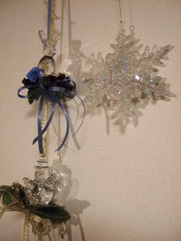 クリスマスには、実はマイナスベクトルの思い入れしかないのだけれど、でもでも、クリスマスを口実として華やかに賑やかになる、この時節の街や商品ラインナップは大!歓迎♪街のイルミネーションも、夏の夜なんかよりずっと、綺麗になるし。ケーキだって、10~2月くらいは、次々と目新しいものが出てくるしるなので、「別にクリスマスだからじゃないんだけど」と呟きつつ、色々と買い込むことになるのは、不可抗力ということで。 -◇-◇-◇-まずは、先日のウェスティンホテルで購入した、オーナメント細工。ウサギさんと雪だるま。ザルツブルグから持ってきたんですよ、というオジサマも良い味を醸し出していたけれど、とても愛らしい細工とリボンに引き寄せられて、結局2つ購入。雪ダルマの定番オプション、ボウシとホウキは、煙突掃除夫さんの格好なんだ、とは初めて知りました。サンタクロースも煙突から入ってくるそうだし、冬はやっぱり煙突=暖炉が切り離せない文化なんでしょうねぇ。 それ、なんだ?! 触るのー!当然のごとく、「気になるー!!」と見上げるネコ族たち。こればっかりは、そうそう代わりが手に入るものじゃないんだから、駄目ん(苦笑)。 -◇-◇-◇-もう1つは、前々から欲しいと思っていた、玄関用のウェルカムリース。かなり前から、お客様がいらした時とかにちょっと飾れるものがあったらいいなぁ、と思って探してはいたのだけれど、なかなか希望通りのものが見つからなくて。だったら、手作りするしかないかー、と、つる(葡萄かな?)だけのリースを買ってきて、アイビー(フェイク)と葡萄(フェイク)をセッティングしてみた。最終的には「Welcome」プレートとか、ファミリーネームプレートとか付けたいなー。そのプレートも、木製が良いのか、金属製が良いのか、と思案中。ネコのシルエットとか入っていたらキュートかも?!などと妄想は膨らむけれど、デザイン的に納まりの良いものとなると、ねぇ。まだまだ、未完成。がんばるぞー、おー。