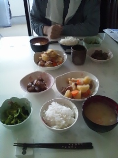 一週間お疲れ様です土曜日の朝ごはんぉ寝坊してゎだめです。いつもどおり起きて朝食の支度をします★ダーリンを少しゆっくり寝かせてあげます。 夜ゎ普段から残業残業でおうちで食べることがなぃので週末ゎちゃんと食べてもらぃたぃのです。おうちゎやっぱりいいなぁって思ってもらえるかな。肉じゃが 小松菜のおひたし 雷こんにゃくわさび風味ご飯 お味噌汁 です。