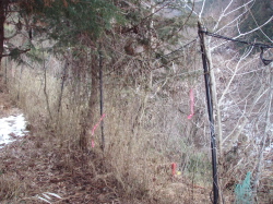 (写真)は、シカの食害防止用の防護ネットです。ヒノキの植林をした公有林などを谷ごと囲い、ネットの中にシカやイノシシが入り込むのを防ごうという仕組みです。高さは優に2メートルはあり、要所要所に出入り口が設けてあります。保護区だからない、猟場だからあるということはありません。 で、猟場でネットがある場合、この中で猟をするか外でするかはとても重要です。本来、ネットの中には獲物はいないはずですが、倒木がネットの一部を押し下げていたり、経年劣化で破れた部分があったりして、木を守るはずが、獣たちの絶好の餌場になっていたりすることもあります。獣たちはその出入り口をよーく知っています。 さて、ネットの外で猟をする場合、ネット際に追い込むと猟は楽です。急斜面では獲物はネット沿いに上か下へ移動することが多く、どちらかのタツマに必ずかかります。5連発の自動ライフル撃ち尽くして1人で1度に5頭獲ったという人の話もあります。2度は聞きたくない自慢話です。ところが、これが内側だと事情が違います。イヌに追われ、ネットの外へ出られる場所は限られているはずなのに、広い谷の中を縦横無尽に走り回り、いつの間にかイヌがまかれています。足跡を辿ってみると、こんなとこ跳んだんかいっていうところを飛び越えてネットの外へ出てます。野生の力です。