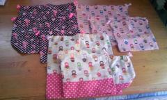 こんにちは(^-^)すごく久しぶりの更新です。娘の入園準備と息子の春休みで気ばかり忙しいセナです。…それに入園が近付くにつれ、やはり淋しくてしょうがないダメな母です(ToT)実は私…去年から本当に嫌な事ばかりあり、精神的にヘコみっぱなしが今も続いています。そして今だに嫌な事は終わらず(*_*)何をするのも辛くなり、落ち込んでいる時も娘がずっとそばにいて明るくニコニコ話しかけてくれていたので、過ごしてこれました。それが4月から一人になるとどうなるんだろうと、夜一人で縫い縫いしている時、ウルウルしてしまう事も度々(^_^;ですが、そんな思いを悟らせない為に娘には「楽しみだね~!お友達と何して遊ぶのかな?」などと話しています。私にベッタリで誰にも預けられない子なので、離れるのは初めてです。娘が楽しく通えるように、少しでも力になりたいです(*^_^*)通う園では、体操着袋、コップ袋、お弁当袋、上履き袋、連絡バッグが必要です。上履き袋と連絡バッグは規定があります。連絡バッグは34×46センチと中途半端(笑)どうにか出来上がりました(^-^)vキャラクターにしなかったけど、気に入ってくれたらいいな(*^_^*)体操着袋、コップ袋、お弁当袋の3点セットです。私は慎重派なので(笑)どれも多めに作っておきました。こちらが連絡バッグ、上履き袋です。お友達とかぶらないで、自分のだとすぐ覚えて欲しくて、この柄にしましたがあまり嬉しそうではありませんでした(^_^;やっぱり、キティちゃんやプリンセスが良かったみたいです、ごめんよ、娘・・・。息子、とうとうグラグラになってしまった上前歯が1本抜けました。とってもおマヌケな顔…可愛すぎです(*^_^*)あっという間に春休みも終わりです。そして娘の入園式…淋しいなぁ(笑)何か良い事ないかなぁ。