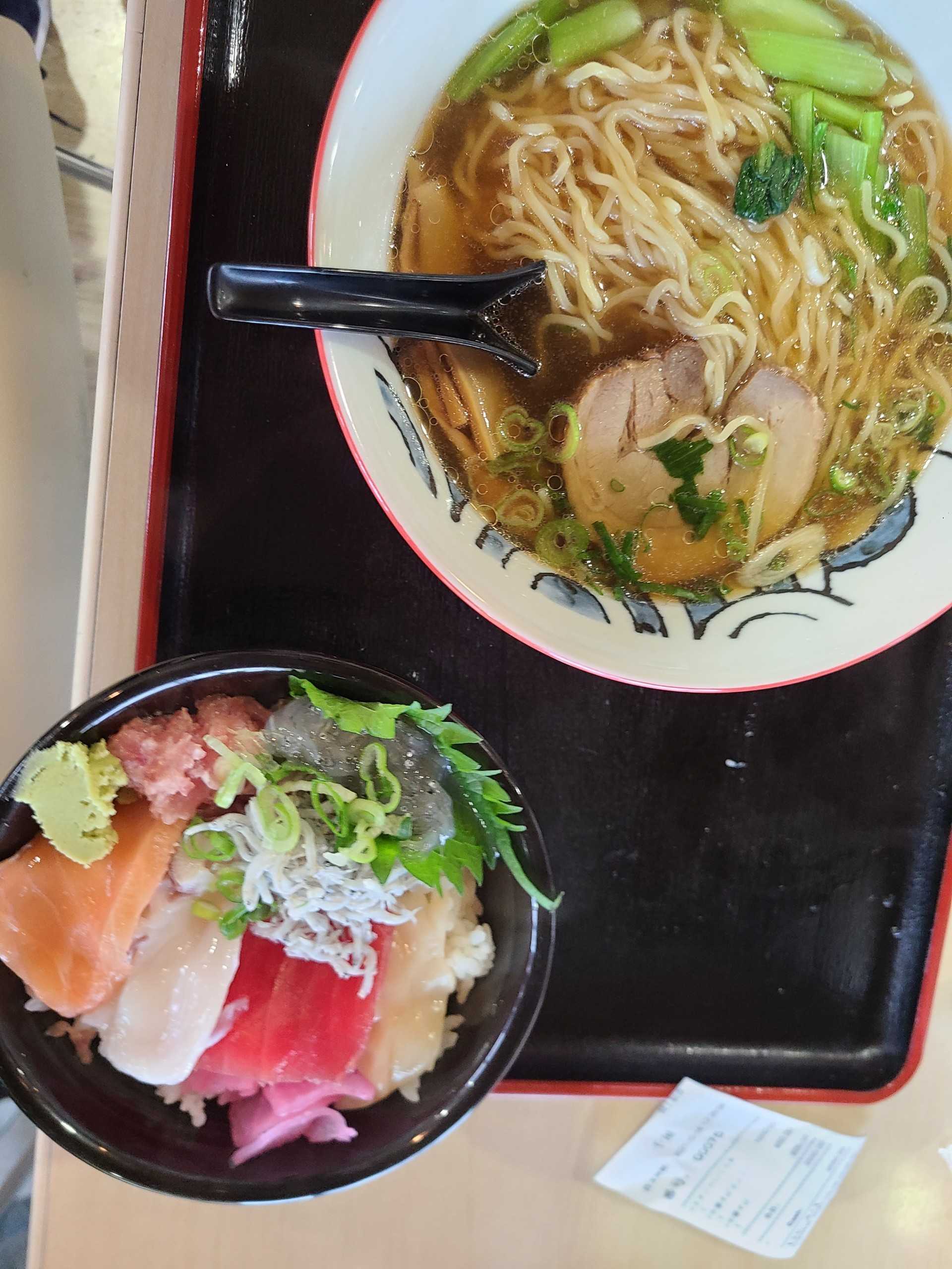 こんばんは🌙😃❗ 今日は、結局一日中雨☔💧 結局、夫ちゃんの靴屋さんは、出店しないことが判明。残念😞 検討した結果、雨☔も晴れそうになく、今日は近場のショッピングセンターへ靴を買いに。 数日泊まっているアラナイ母も一緒に。 …とここで、名案😃💡 職業体験へ一人で行く練習。電車や乗り場をとりあえず確認、降りる駅は一つ手前だが、夫ちゃんと行ってもらうことにした。 …で、ショッピングセンターで、待ち合わせ。 アラナイ母、とにかく何をするにも時間がかかる。💦 駅で、夫ちゃん&娘を🚗降ろし、ショッピングセンターへ。 靴屋さんで待ち合わせだったが、隣の下着屋さんで、アラナイ母、迷う迷う🌀(迷い道、クネクーネ🎵のメロディが頭に流れた💧が、さすがに私もそこしか覚えていない。題名、歌手、不明😥) 下着買うのに、15分ほど迷い、隣の靴屋へ…と思ってみたら、二人👨👧既に、きていた。💧 とっくに来ていたらしい。 「だって三分でついたもの💦」 車🚗の方が速いと思っていたが、間違いだった。 ここは、駅からショッピングセンターへは、短い通路でつながっている。つまり、すぐに着いてしまうのだ。( ̄▽ ̄;)しかも、同じ階のため、エスカレーターで上がったり下がったりしなくともよい。 推理力が足りなかった。💧 改めて、電車の速さを知ることとなった。😓車だと、どうしても信号で止まり、踏切で止まり… と、さて一応目当てのものを一通り買うと、色々な案が出たが、また二人、夫ちゃん&娘は、隣駅まで行き、駅から美容院までを歩いてみることになった。 まぁ中学生なら、駅から見えるお店。まだ視界を遮るものも少ないので、実際歩いてみなくても何とか行けそうだが。 実際、何度か練習しないと多分迷って行けない可能性も大。💦 またまた、美容院近くで待ち合わせして、別れて出発。🚗 🚃💨 さて、歩いて美容院前まで行って来た娘。案の定、靴と靴下が濡れました😓なんで、こんなに歩くのが下手なんでしょうね。…と、私もかなりの確率で、靴靴下を濡らす人。😅 濡らさないように気をつけているつもりでも、やっぱり💧あっと思った瞬間、水溜まりに靴が入ってる😅 不注意、なんでしょうね。😓 さっき、そう言えば娘の通学用靴も買ったじゃない⁉️早速、出して取り替える。🐾 よし、そのままアラナイ母と平日行って人が居なかった海の近くのお店へ。🎶🚗💨🎶 ♪雨☔なのに~🎵 人がいっぱい💧 (春なのにby柏原芳恵のメロディで、どーぞ💖) 雨だと言うのに、近所の人か観光客か?結構な人がいました。 ランチ、どれにしようか😍でも、動いてないし。あまりお腹空いてない❗よし❗今日もアラナイ母とはんぶんこだ🎵フードコートになっていて、海の近くだけあって海鮮丼、しらす丼等沢山のメニューが。 その中の一つのお店。何故か、このお店ラーメン&海鮮丼。 ちょっと面白い。😊 ラーメン🍜🍥海鮮丼単品あり、ラーメン&海鮮丼セットメニューもあり。 写真がずらーっと貼ってあってなんと分かりやすい。😊 インクルーシブ感あり。子供でも、分かりやすくていい感じ。 こちらは、夫ちゃんのラーメン🍜🍥&海鮮丼セット。⤵️ 美味しそうでしょ⁉️ 娘、イクラ&マグロたたき丼。写メとる前に、すぐに食べ始め💧 私&アラナイ母。ラーメン🍜🍥単品。でも、ミニしらす丼、希望するとついてくるんです❗もちろん希望しましたよ⤴️ ラーメン完食。そしたら、丼には、こんな楽しい絵が🎵 楽しかったのは、入った瞬間から聞こえて来た、ピアノ🎹 自動演奏かと、ピアノの方をみると、男の人が、何故か上下ジャージ姿💧で、ひいていました。 次々と休みもせず、まるで自動演奏のように繰り出される音楽は、ジャンルを問わず、鬼滅の刃、檸檬からクラシックまで。魔法のようでした。 はらみちゃんの男性バージョンなのか、アルバイトなのか… 謎('_'?)でしたが、声を掛ける間がなく、次々と弾いていたのが印象的でした。 今日は、あいにくの雨☔ 向こう岸のスポーツ施設⁉️は今日はあまり混んでなさそう。 さて、帰ってきて、皆一休み。 夕食は何? 面倒なので、週末は簡単に。 焼き鳥にしましたよ。 串に差して焼いてみた。レバーに鶏皮、ぼんじり。 わー、大変💦炎上した~💧 やっぱり、食欲の秋🍁💧 メタボ強化月間です😅 今日も、お腹いっぱい食べてしまいました~🎵 馬肥ゆる秋 🐱肥ゆる秋 人も肥ゆる秋🍁 秋🍁🌰🍇満喫中 スポーツの秋という言葉。 私の辞書に今のところはない。😅💧 では、今日もお疲れ様でした😌💓 おやすみなさい😌🌃💤