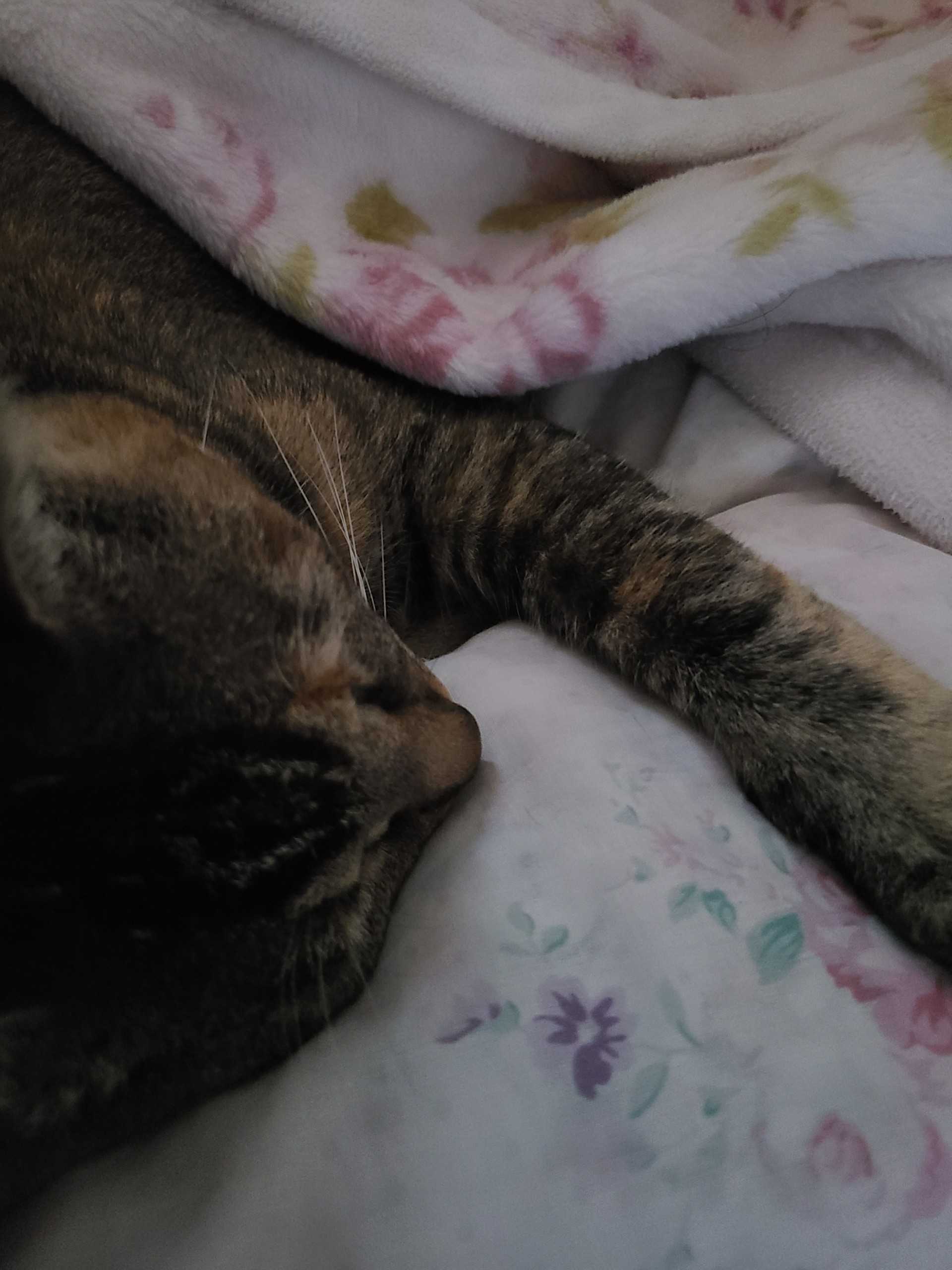 おはようございます👋😃☀️ 今日は、ちょっと寝坊⏰ なんたって夜中やっぱり痛かった😖🌀⚡2時くらいから痛くて起きたが、寒くて起きられない。💧 またしても、原液ラベンダーオイルを塗ってみた。(よい子の皆さんは真似しないでね)少し収まったが、やはり痛みはぶり返し💧仕方なく、下に降りてロキソニンを半分だけ飲んだ。 胃に負担をかけたくなかったから、とりあえず半分。やっと寝たのは、3時半?4時⁉️ おたふくが。宍戸錠位に、なったかと思われる。(またまた、知らないなんて~💧)知らない人は、調べて見よう❗きっと、自分の知識になるから。 ま、知らなくても生きて行けるけど😅 ってことで、朝晩は確実に寒くなってきた今日この頃。 今月も、もうすぐ終わり。🎃 神様達も、お化けに化けて👻ハロウィンしてから、お家に帰る仕度中かなー。島根も遠くて中々行けないけど、神様達が集まる様子を一度見てみたいものだなー。😌 …アラナイ母も、支度中。💧越冬つばめならね、越冬アラナイ🦃 春には、元気に戻って来るかな。💧 安眠第一、健康第一ですねー、つくづく感じる今日この頃。😌 目が見えると言ってたアラナイ母。やっぱりあまり見えないと💧緑内障が進んでいるのか。 帰ってきたら、こちらで暮らすことになるかもな。💧和室を片付けて置こう。 では、最後に私の愛しい子💖 眠そうな顔でフミフミしてる💖かわいいでしょ🎀←親バカ では、今日も心は晴れな1日を💕