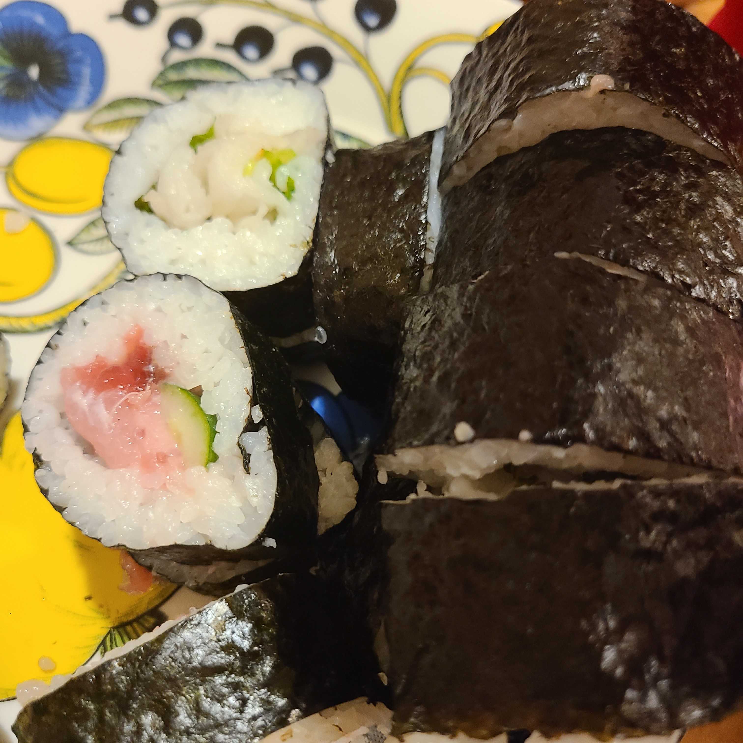 こんばんは🌙😃❗昨夜は、久しぶりの仕事&夕方から予約してた恵方巻きと豆を買いに行ったら、明日療育で何作ればいいかわからなーい🤷と言う娘💧100円ショップに寄りました😥結局水引何個か購入。昨日の恵方巻き。比較的リッチな夕食だった。✨🎵ちなみに、私はエンガワが大好物😋💕 最近、寒いし、ちょっと家事はサボりぎみ。😥 で今日は、療育から帰りが6時になり、余っているラーメン🍜🍥💧毎日、ご馳走だといいんだけど、このご時世。先立つものが🤑 けど、今月だけは土曜日はサボりの日にしよう。今月で1日がかりの療育は終了だしね。😌今まで、療育につぎこんでいた◯万円😥学習だけになるので約半額となるため、余った分は使わず娘の老後資金にしたいと思います。…で、昨日は疲れて寝てしまいました。😥夫ちゃん部屋を洗濯乾燥部屋にして、暖かくしていたら、寝てしまい💧自分で仕掛けたワナに自分で落ちたようなもの。😓🦊さて、やっぱり冬の睡眠は大切。今日も午前様にならないうちに…今日も1日お疲れ様でした。😌💓お休みなさい😌🌃💤🐢🍀🐢🍀🐢🍀